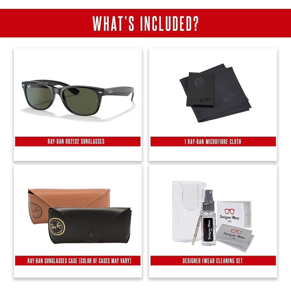 Ray-Ban RB2132 Wayfarer - Lentes de sol cuadrados para hombres y mujeres con kit de gafas de diseñador iWear