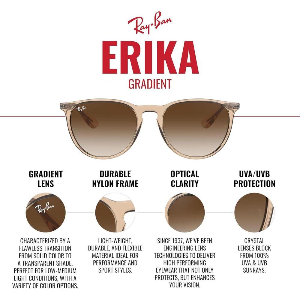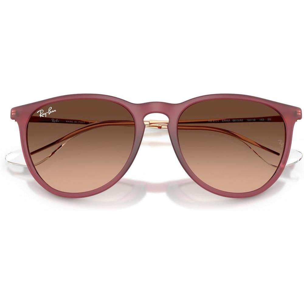 • CARACTERÍSTICAS DEL MARCO: RB4171 Erika cuenta con una montura redonda de goma violeta y lentes de color marrón degradado rosa.
