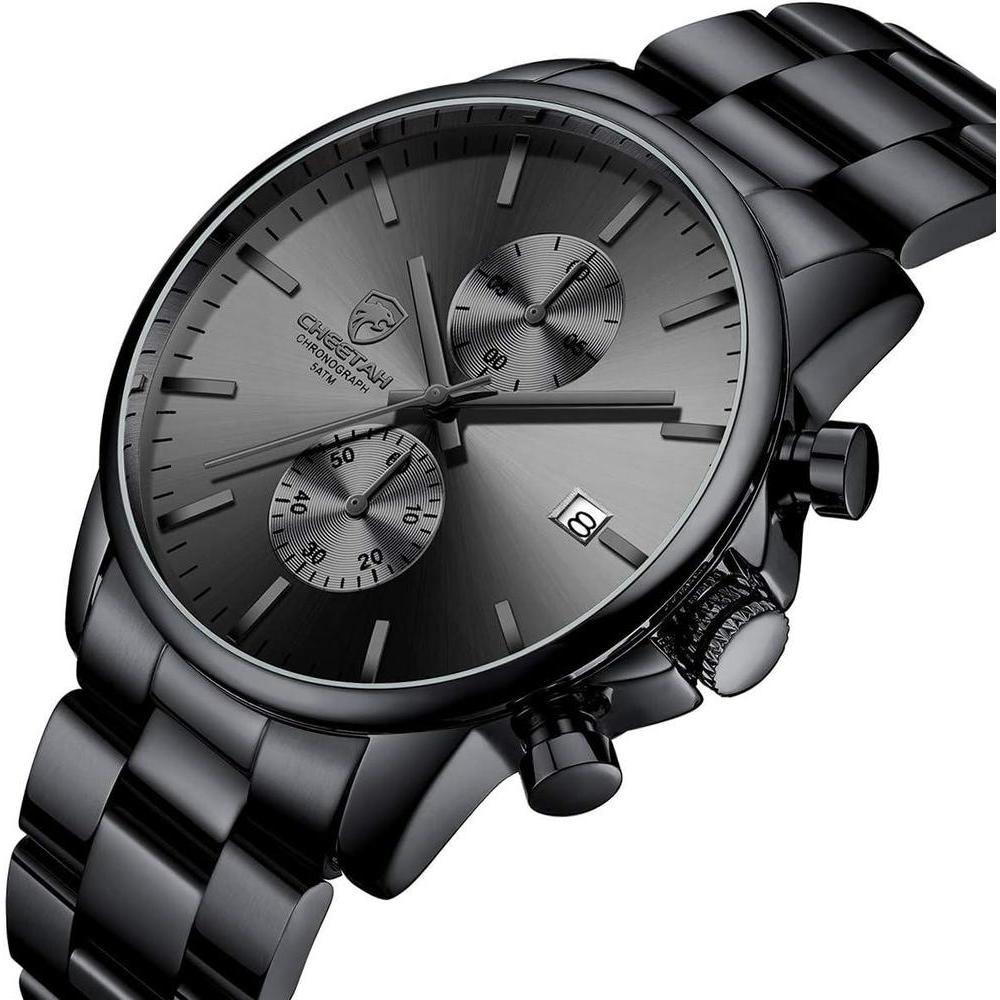 Reloj cronógrafo para hombre GOLDEN HOUR, acero inoxidable, resistente al agua, movimiento de cuarzo y fecha automática