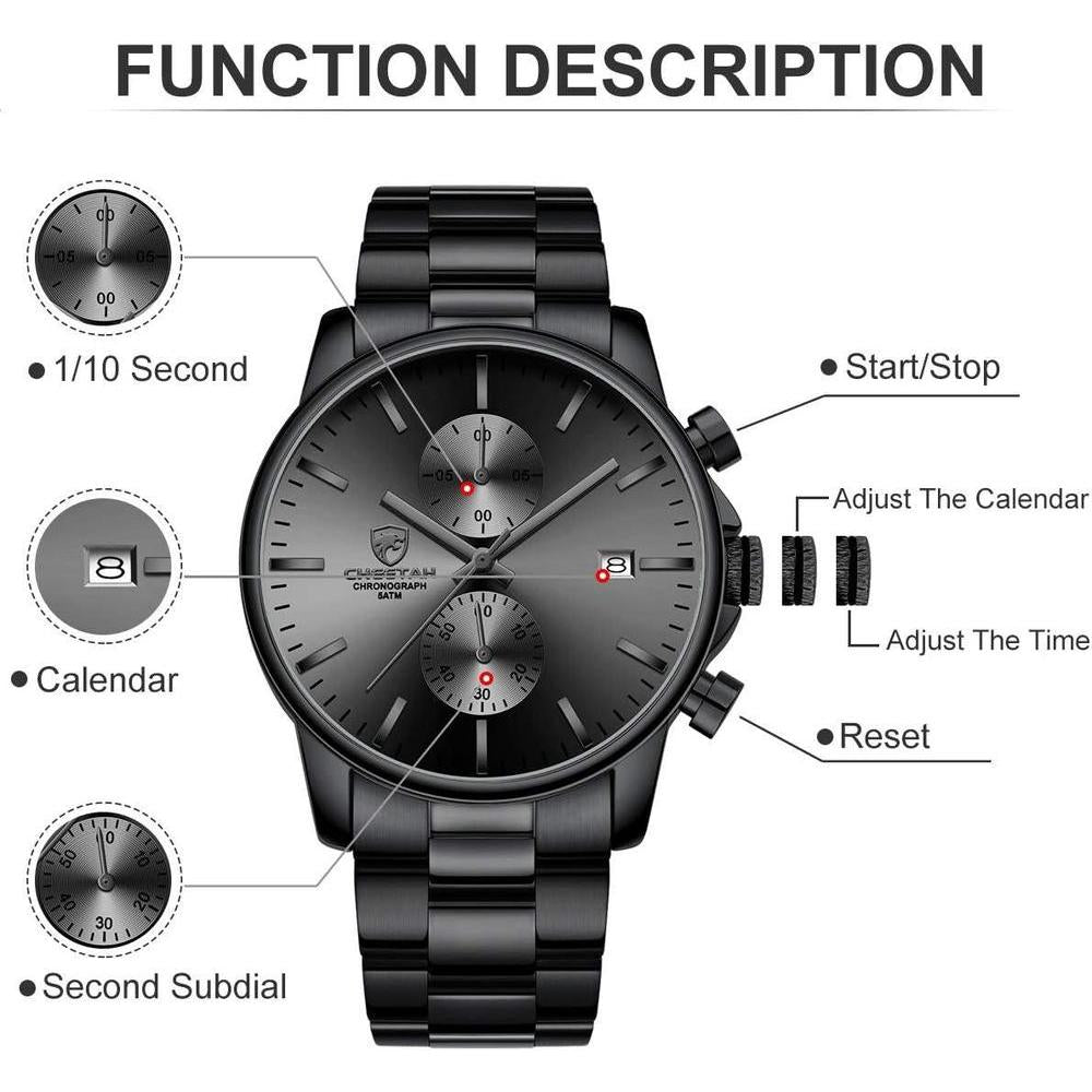 • Cronógrafo deportivo: Su subesfera multifuncional tiene cronógrafo, calendario, cuenta segundos. Te proporciona un uso multifunción.