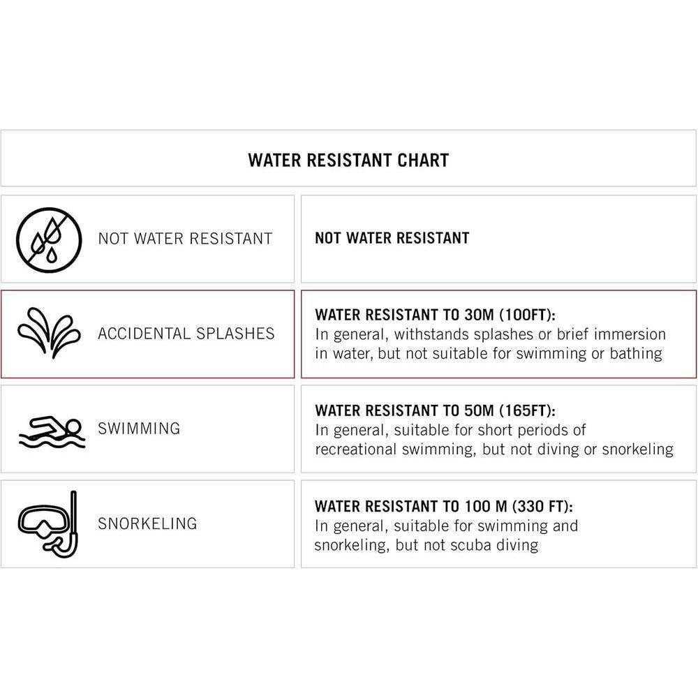 • Profundidad resistente al agua: 100 pies (30.48 metros)