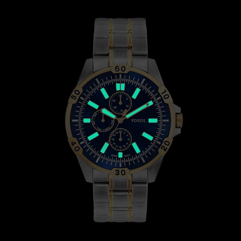 Reloj Fossil Garrett multifuncional de acero inoxidable en dos tonos con estilo deportivo y profundidad resistente al agua