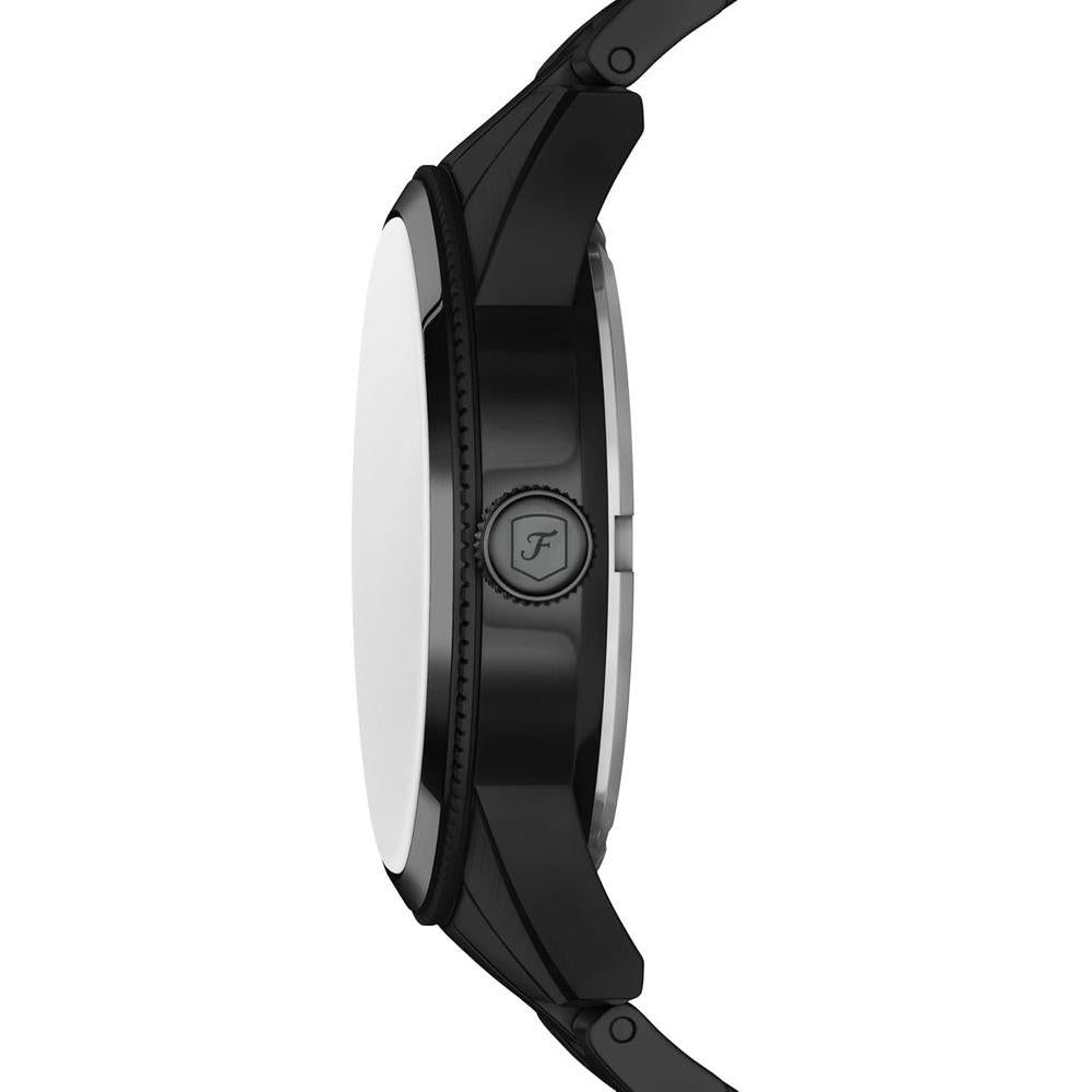 • Una pulsera de acero inoxidable negro y una caja a juego crean una base elegante para el diseño de este reloj. La esfera negra de rayos solares añade textura y profundidad, complementada con prácticos subesferas para funciones de día, fecha y 24 horas.