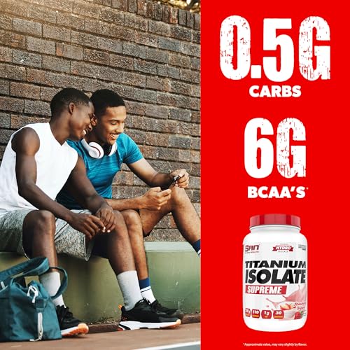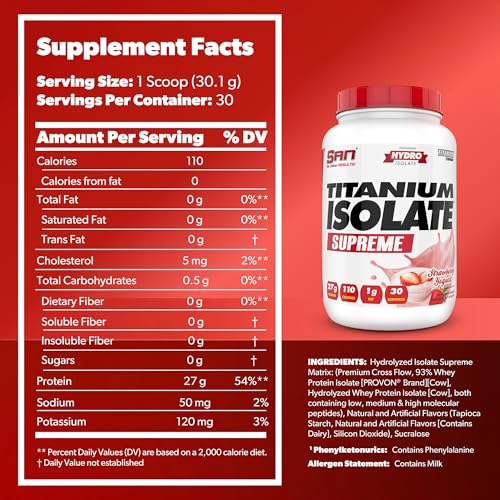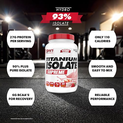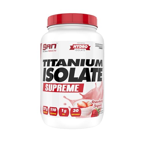 SAN Titanium Isolate Supreme Whey Protein Powder - Strawberry Yogurt Flavor, 1.99 lbs, 27g Protein, 1g Carbs, 30 Servings, Low-Calorie, Muscle Recovery