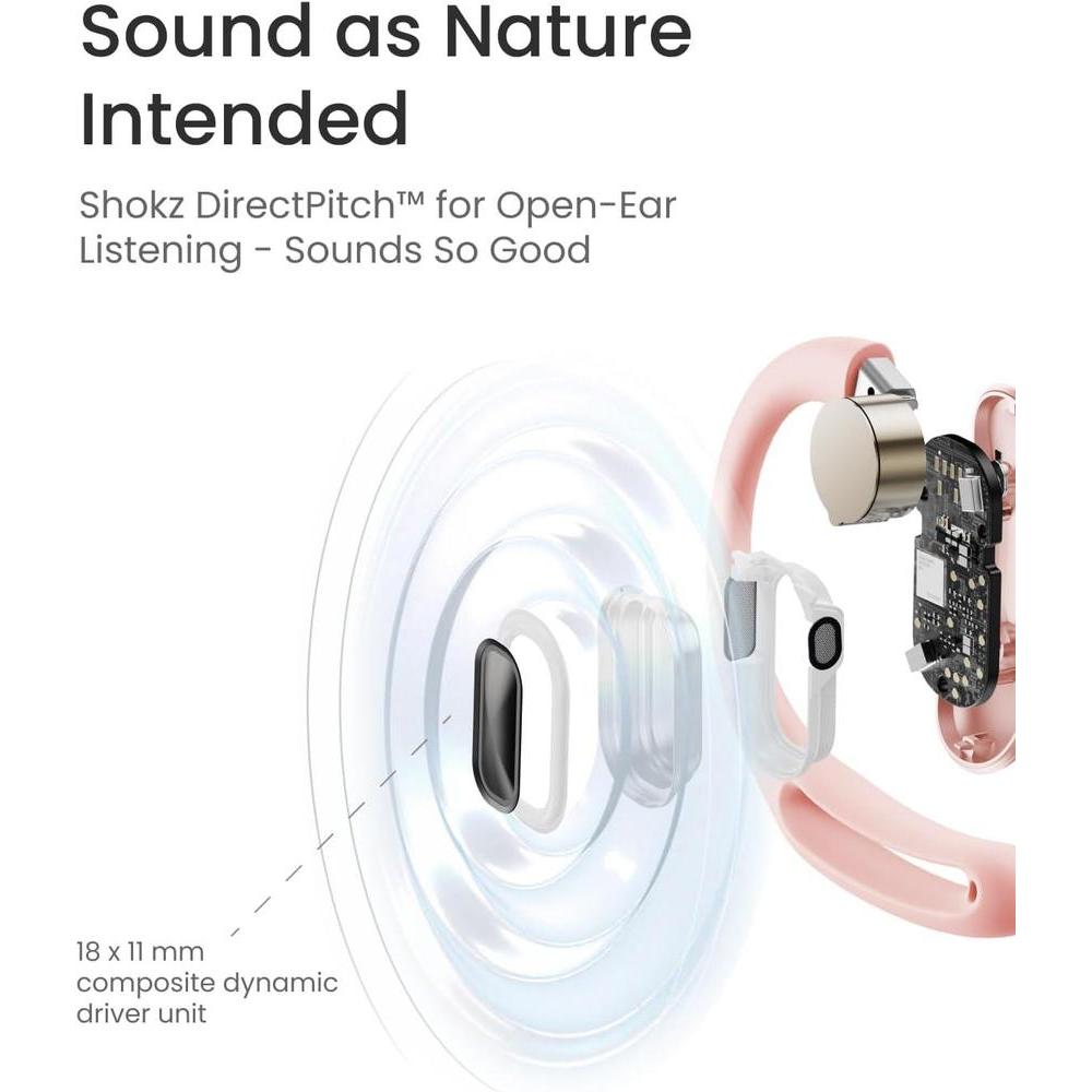 • Sonido premium: la tecnología SHOKZ DirectPitch y los innovadores orificios de afinación ofrecen un audio preciso y natural con fugas mínimas y graves profundos y ricos, todo mientras deja tus oídos abiertos al mundo que te rodea.