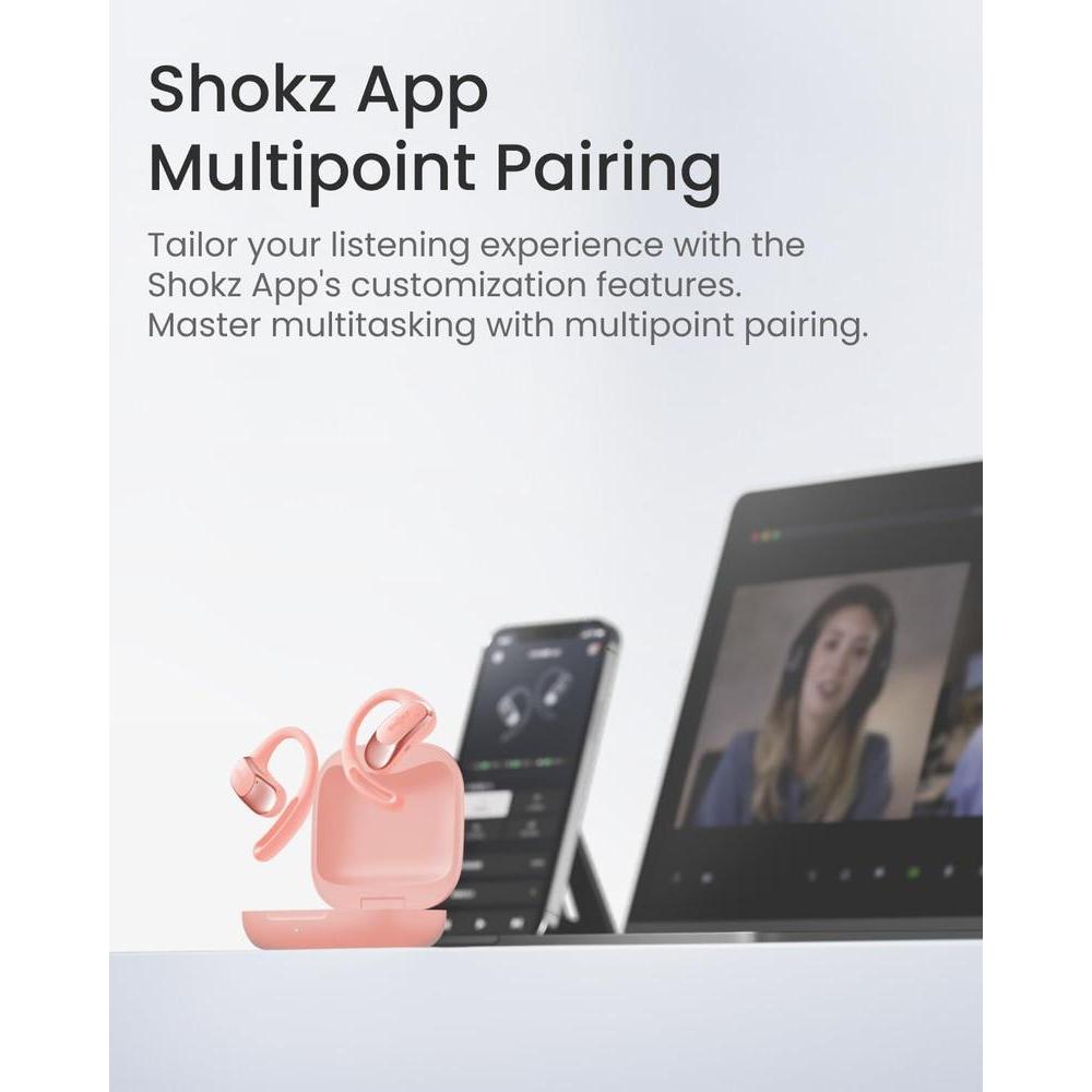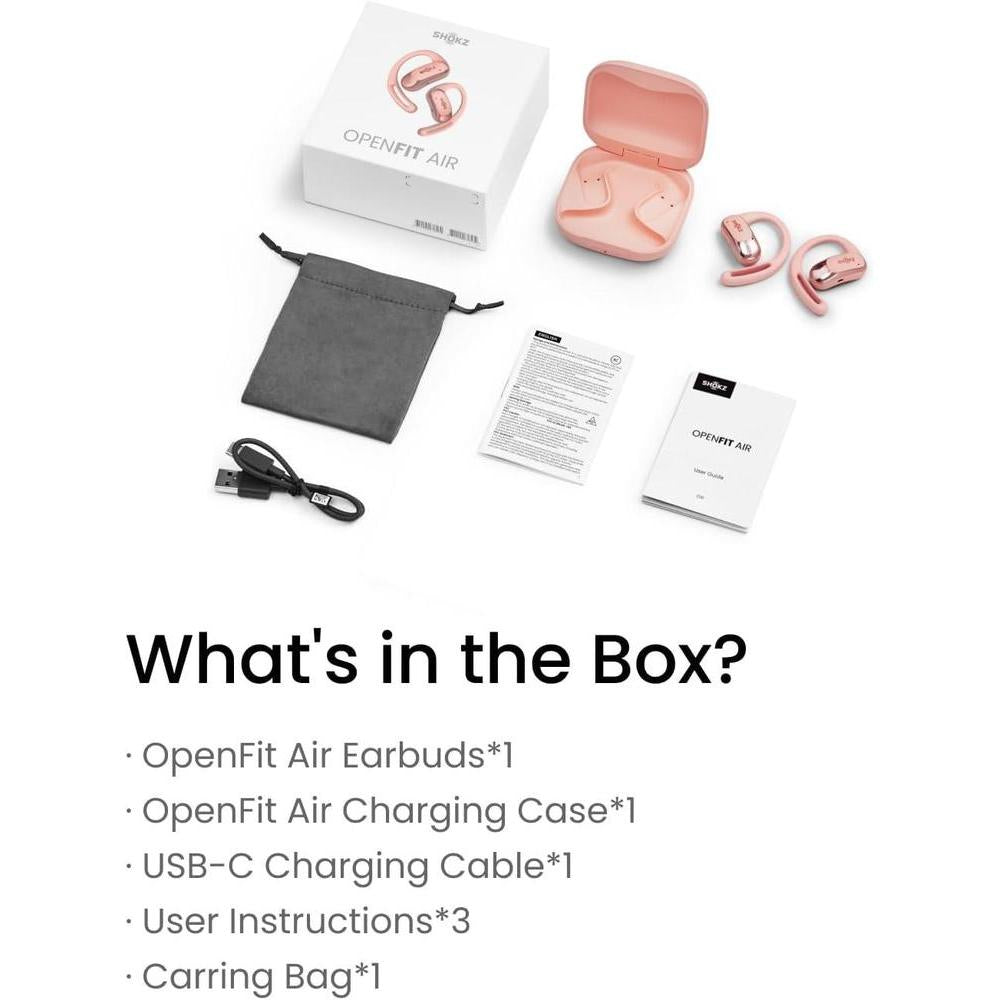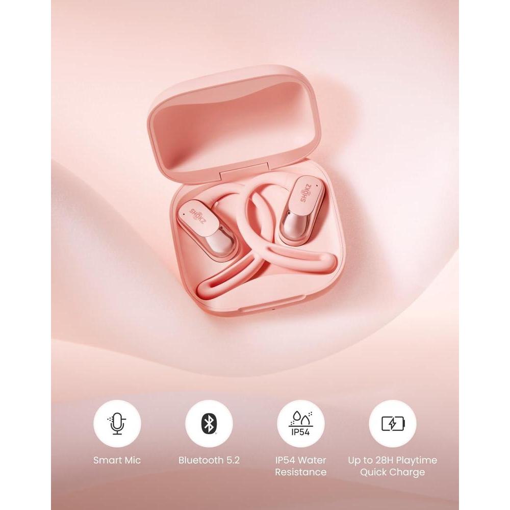 SHOKZ OpenFit Air en rosa, auriculares de oreja abierta, verdaderamente inalámbricos, resistentes al agua y seguros para uso diario