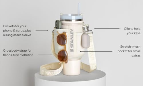 Stanley All Day Quencher Carry All for 40 oz Tumbler with Handle | Crossbody Bag with Phone Holder Pocket, Card Sleeve & Detachable Strap | Water Bottle Carrier Bag | BPA-Free | Peony