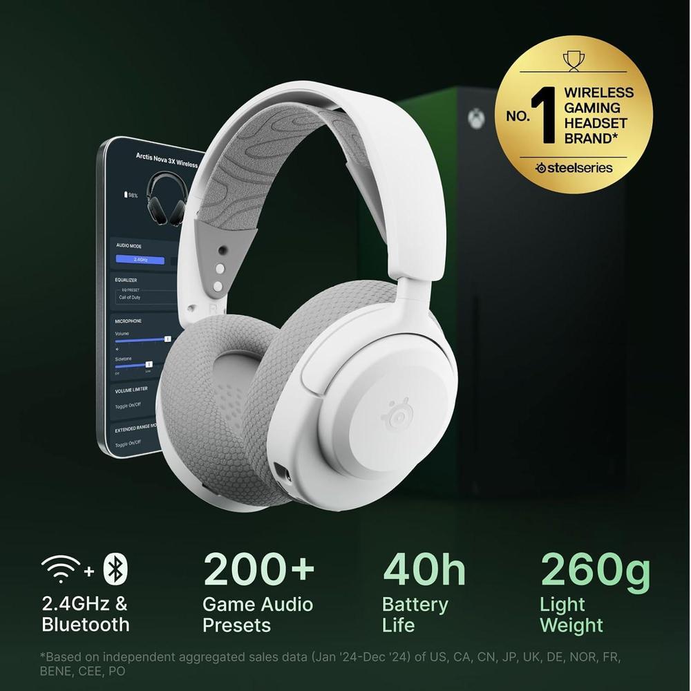 SteelSeries Arctis Nova 3X Wireless Gaming Headset con Control por App y Batería de 40 Horas, Drivers Magnéticos, Multi-Plataforma