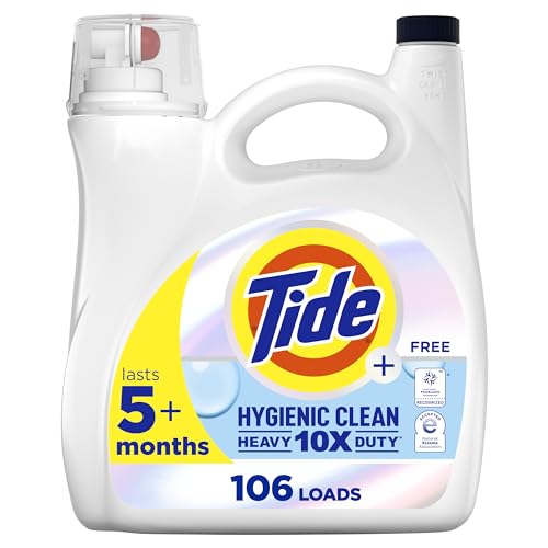 Tide Hygienic Clean Heavy Duty 10x Free Liquid Laundry Detergent, HE Compatible, Unscented, 106 loads, 149 oz