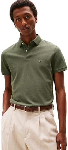 Tommy Hilfiger Mens Short Sleeve Polo Shirts in Regular Fit with Stretch and Organic Pique Cotton