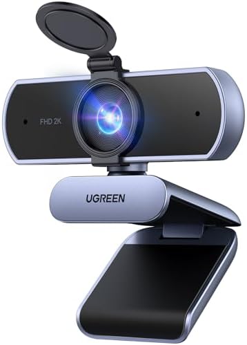 UGREEN 2K Webcam for PC Ultra HD 1080P Computer Webcam with Microphone, PC Camera with Privacy Cover, USB Web Camera for Streaming, Conference, Video Calling, Zoom, Skype, Teams, FaceTime, Grey