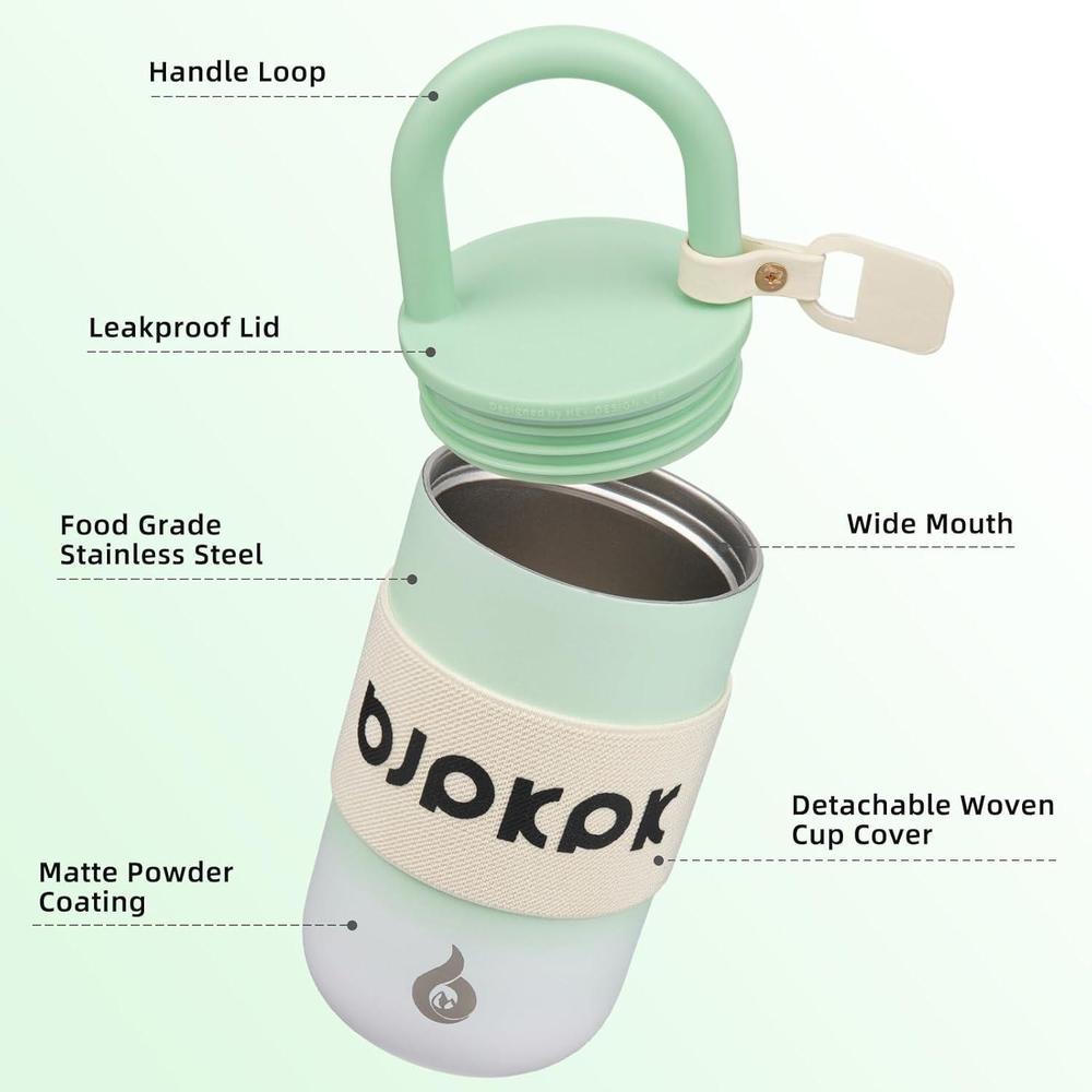 Vaso térmico de acero inoxidable BJPKPK con tapa y asa, ideal para café de viaje, color niebla verde