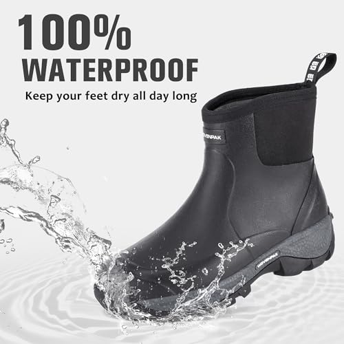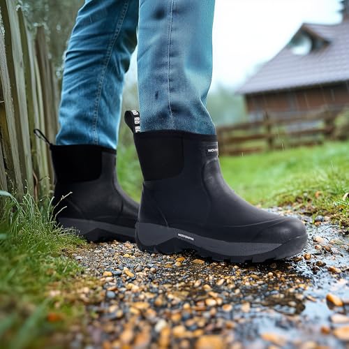 WOVENPAK Waterproof Garden Shoes Rain Boots for Men, Ankle Rubber Work Boots, Insulated Outdoor Mud Boot for Gardening, Hunting, Farming, Camping and Yard, Size 6-13